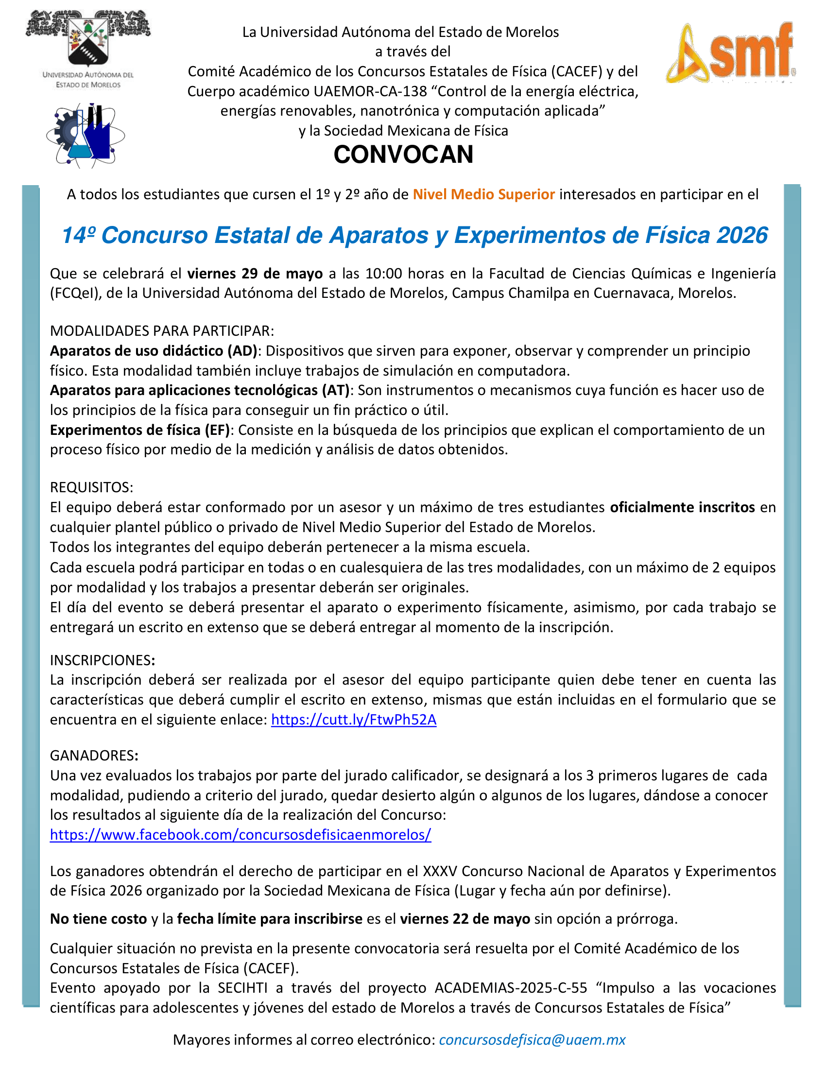 14º Concurso Estatal de Aparatos y Experimentos de Física 2026