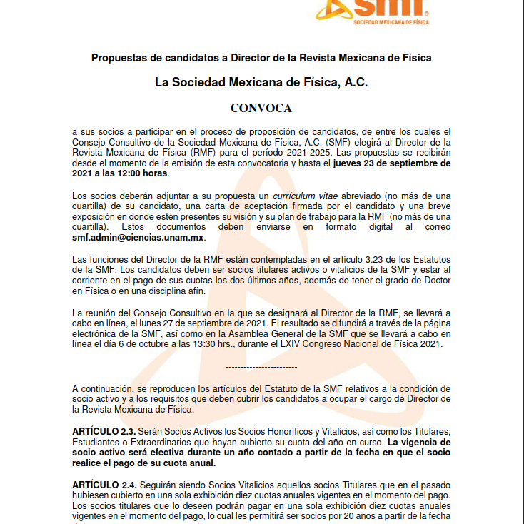 Propuestas de candidatos a Director de la Revista Mexicana de Física