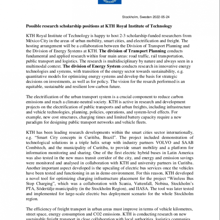 Convocatoria 2022 SECTEI para becas de estancias posdoctorales en el extranjero, y presentación de proyectos al Royal Institute of Technology del Reino de Suecia (KTH)