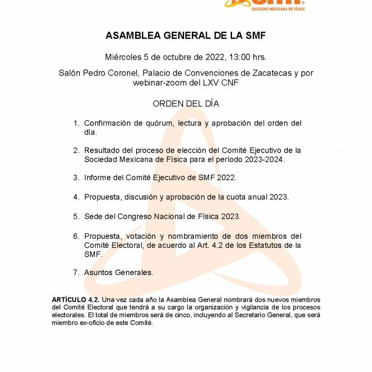 Cierre de la recepción de votos para la elección del Comité Ejecutivo de la Sociedad Mexicana de Física para el período 2023-2024