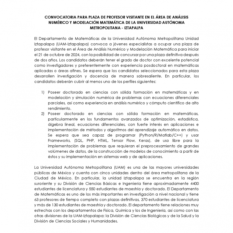 CONVOCATORIA PARA PLAZA DE PROFESOR VISITANTE