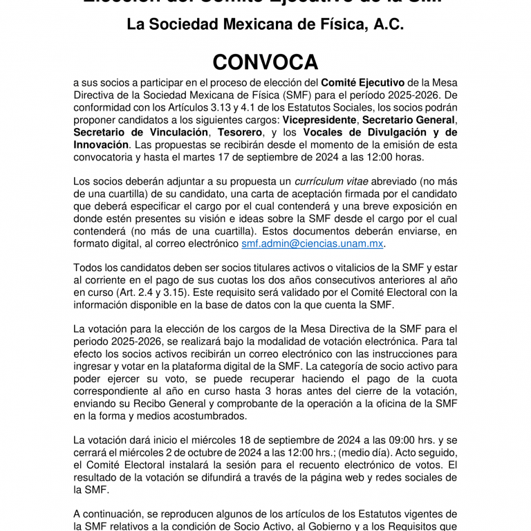 Elección del Comité Ejecutivo de la SMF 2025-2026