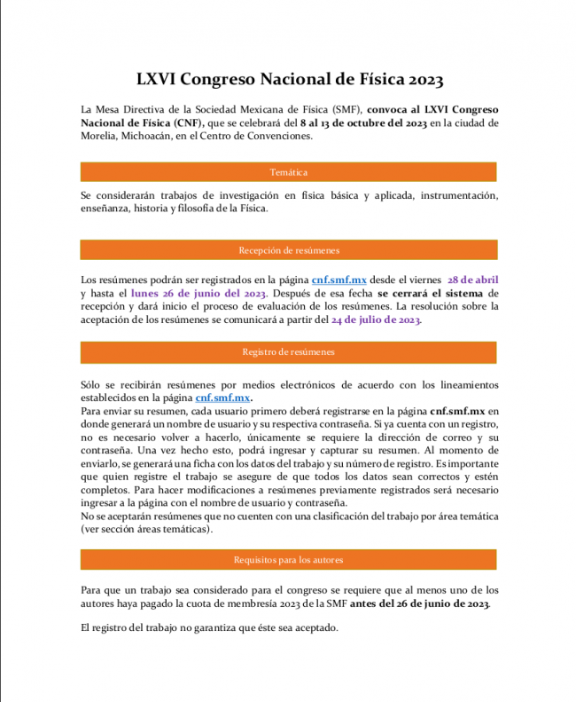 Convocatoria del LXVI Congreso Nacional de Física 2023