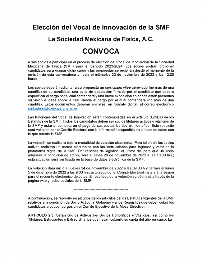 Elección de Vocal de Innovación de la SMF 2023-2024