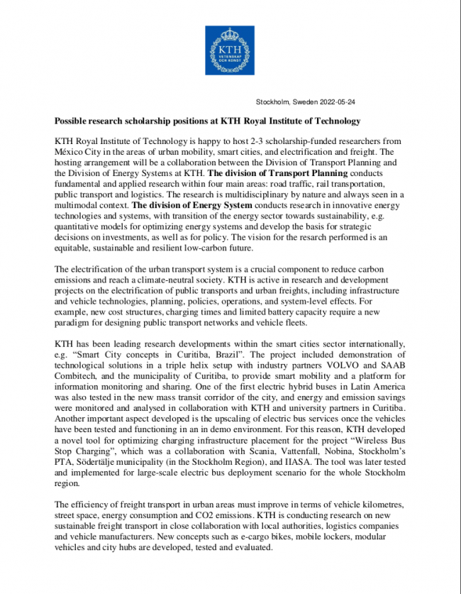 Convocatoria 2022 SECTEI para becas de estancias posdoctorales en el extranjero, y presentación de proyectos al Royal Institute of Technology del Reino de Suecia (KTH)