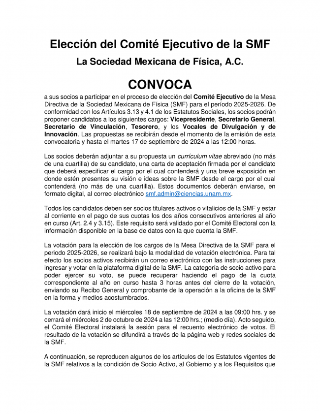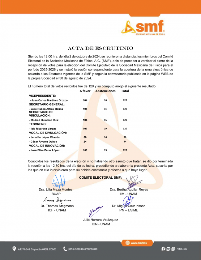 Elección del Comité Ejecutivo de la SMF 2025-2026