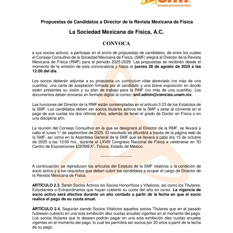 Propuestas de Candidatos a Director de la Revista Mexicana de Física 2025